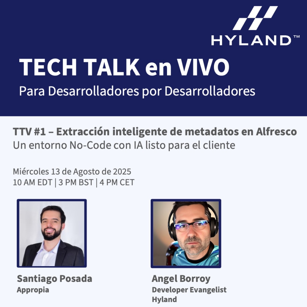 Tech Talks en Vivo #1 - Extracción inteligente de metadatos en Alfresco: un entorno No‑Code con IA listo para el cliente